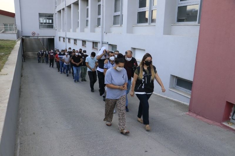 Adana’de düzenlenen uyuşturucu operasyonunda gözaltına alınan ve telefonda polise yakalanmamak için şifreli konuştukları belirlenen şüphelilerden 14’ü tutuklandı.
