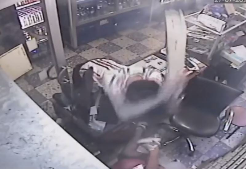 Trabzon’un Ortahisar ilçesinde Özbekistan uyruklu şahıs sigara alma bahanesiyle girdiği büfede işyeri sahibine elindeki çivili kalasla saldırdı. O anlar güvenlik kamerasına yansıdı.