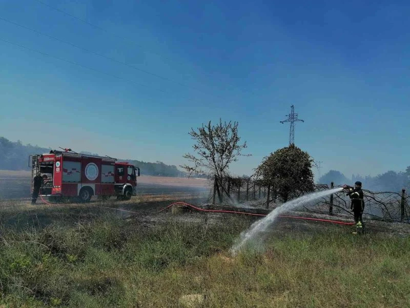 Tekirdağ Çorlu’da çıkan anız yangını itfaiye ve traktörlerin yardımıyla büyümeden söndürüldü.
