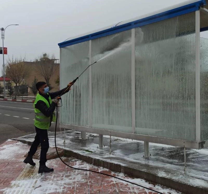 Siirt Belediyesi, kentte vatandaşların ortak kullanım alanlarında korona virüs salgınına karşı temizlik çalışması gerçekleştirdi.