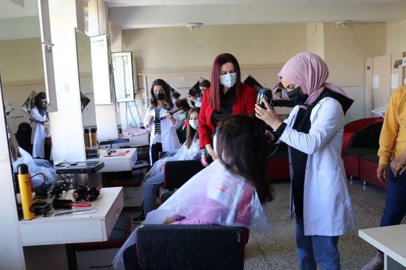 Siirt Valisi Hacıbektaşoğlu’nun eşi Güney Hacıbektaşoğlu, Zeynep Hatun Mesleki ve Teknik Anadolu Lisesi bünyesinde başlatılan ’Meslek Liseleri Ailelerle Buluşuyor Projesi’ kapsamında okulun güzellik bölümü öğrencileri tarafından, farklı okullarda okuyan özel eğitim öğrencilerinin saç ve temel bakımları etkinliğine katıldı. Burada öğrencilerle sohbet eden Hacıbektaşoğlu, öğrencilere çeşitli hediyeler takdim etti.
