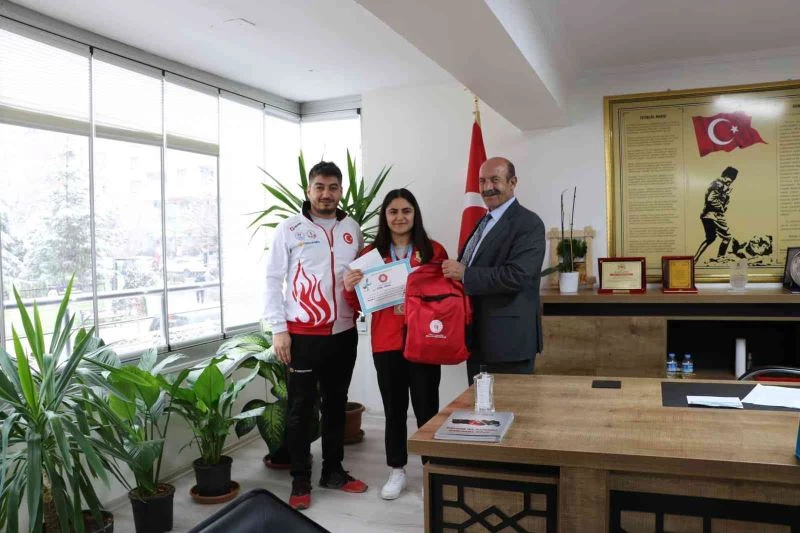 Esma Savun ve Antrenörünü tebrik eden Olgaç, Atina’da yarışacak sporcuya başarılar dileyerek, Savun’a çeşitli spor malzemeleri ve para ödülü verdi.