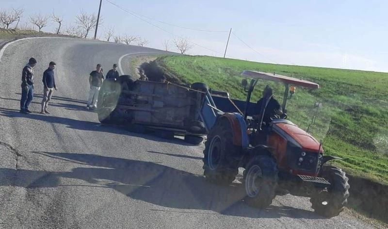 Yan yatan otomobil traktör yardımıyla kurtarılırken, olayla ilgili inceleme başlatıldı.