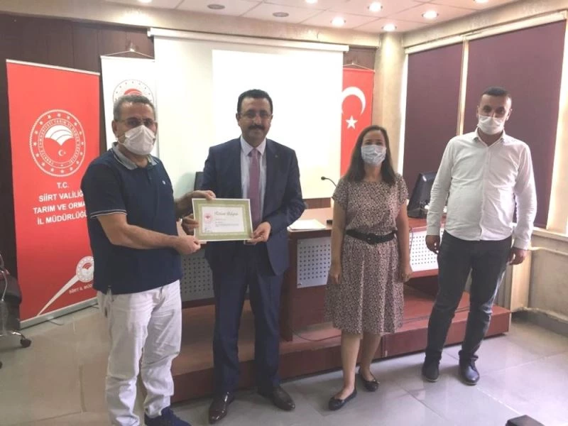 Siirt Tarım ve Orman İl Müdürlüğü toplantı salonunda düzenlenen kursu başarıyla tamamlayan il ve ilçe müdürlüklerinde görevli 20 personel sertifika almaya hak kazandı. Eğitim Tarım ve Orman Bakanlığınca Ankara’dan özel olarak görevlendirilen eğitmen Çiğdem Kurtar tarafından verildi. Gıda ve yem işletmeleri, ancak eğitim alarak sertifikalandırılmış resmi kontrol görevlileri tarafından denetlenebildiğini belirten Siirt Tarım ve Orman İl Müdürü Ergün Demirhan, resmi gıda kontrolör görevlisi kursunu başarıyla tamamlayan personellere yeni görevlerinde başarılar dilediğini söyledi. Demirhan, "Eğitime il ve ilçe müdürlüklerimizden gıda mühendisi, ziraat mühendisi, veteriner hekimler olmak üzere toplam 20 personelimiz katılmıştır. Kurs sonunda katılımcılara kontrol görevlisi kursu katılım belgesi verilmiştir. Verilen bu kurs neticesinde sertifikalarını alan yeni kontrol görevlilerimiz Bakanlığımız adına 5996 sayılı Gıda Kanunu hükümleri doğrultusunda resmi kontrolleri yapmaya ve kanunda öngörülen idarî yaptırımları uygulamaya yetkili hale gelmiştir. Müdürlüğümüz, denetim ekiplerimize yeni katılan 20 gıda kontrol görevlisi ile birlikte İlimizde ve ilçelerimizin tamamında gıda denetimleri için daha güçlü hale gelmiştir. Gıda güvenilirliğini sağlamak amacıyla ilimiz genelinde denetim yapacak yeni kontrol görevlilerine başarılar dilerim" dedi.