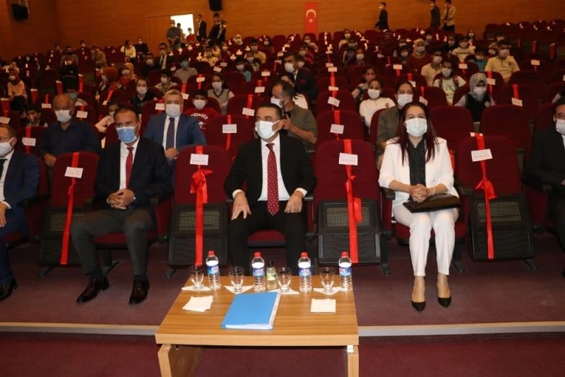 Konuşmaların ardından Vali Hacıbektaşoğlu ve beraberindekiler öğrencilere tabletlerini dağıttı.