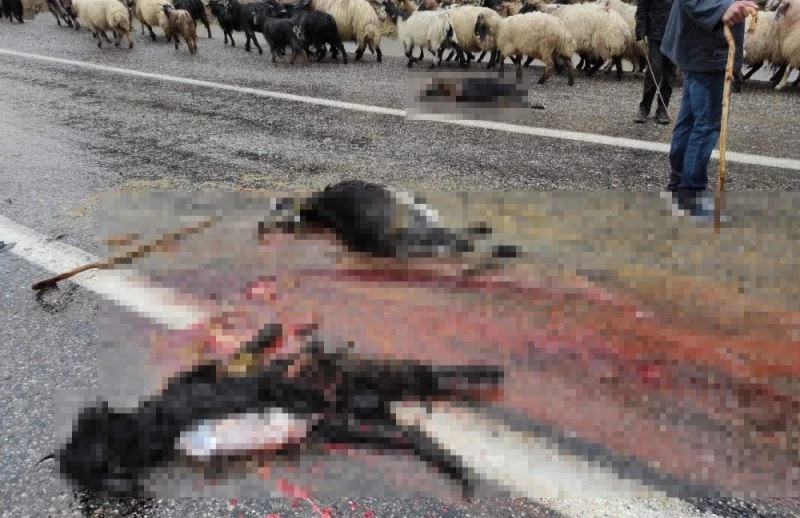 Siirt’te kamyon koyun sürüsüne daldı, 4 hayvan telef oldu