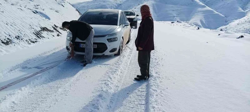 Doğan köyünden Pervari Devlet Hastanesine giden engelli hasta bir kız çocuk ile 4 yakınının içinde bulunduğu otomobil, Geçittepe mevkisinde karda mahsur kaldı. Yetkililerden yardım istenmesi üzerine İl Özel İdaresi ekipleri bölgeye sevk edildi. Otomobil, halatla bağlanan araç yardımıyla mahsur kaldığı yerden kurtarıldı.