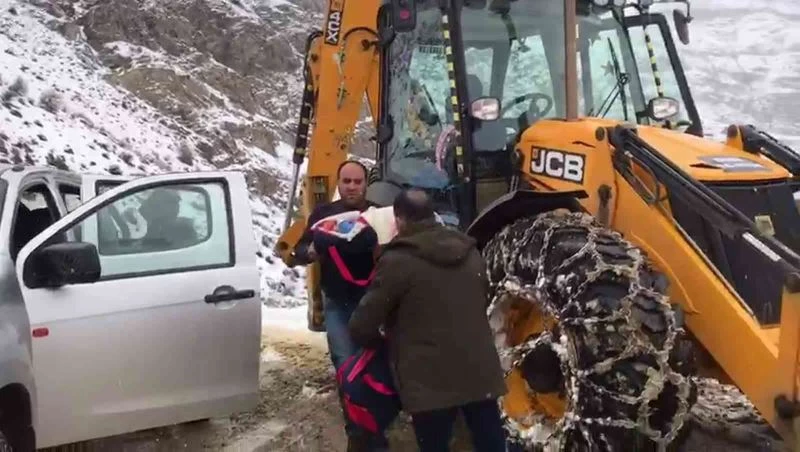 Siirt’te karla mücadele ekipleri, kar nedeni ile yolu kapanan köyde hastalanan 8 aylık bebek için seferber oldu.