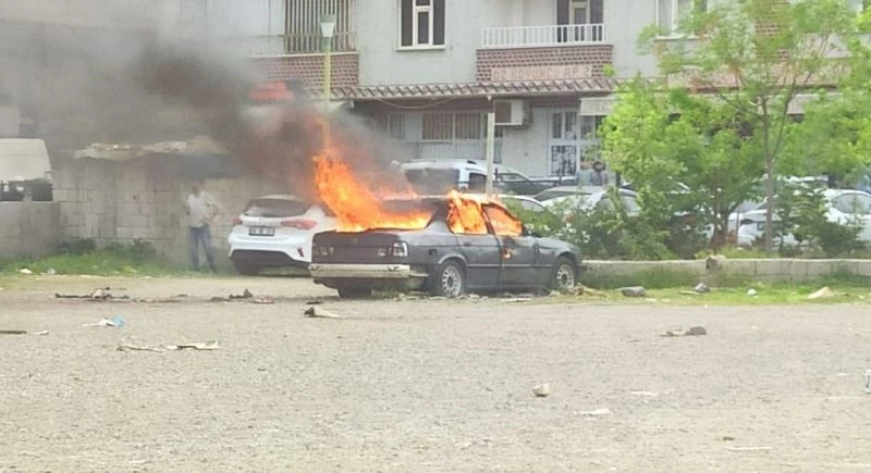 Siirt’te, park halindeyken alev alan otomobil kullanılmaz hale geldi.