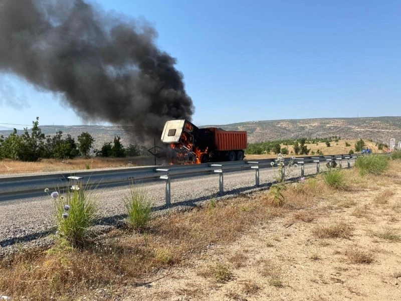 Siirt’te seyir halindeki bir kamyon aniden alev aldı. Ölen ya da yaralananın olmadığı olayda araç kullanılamaz hale geldi.