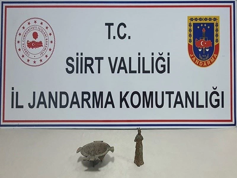 Siirt İl Jandarma Komutanlığı ekiplerince düzenlenen tarihi eser kaçakçılık operasyonunda 2 parça tarihi eser ele geçirildi.