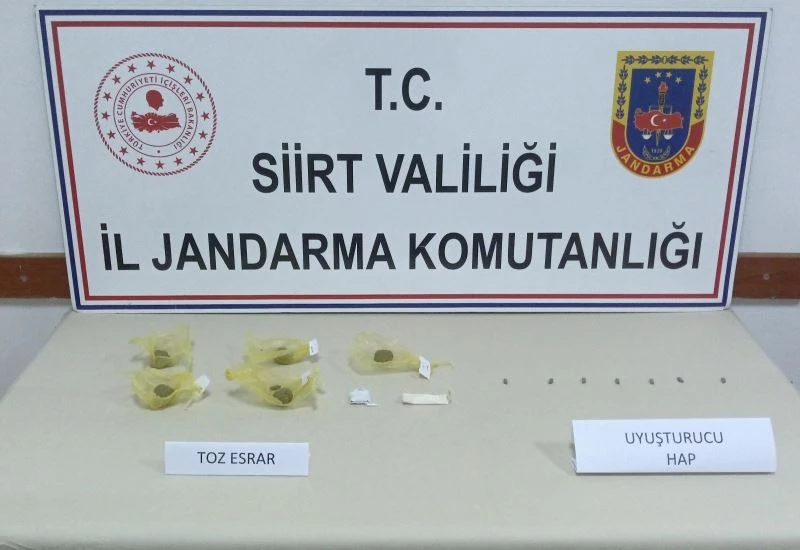 Siirt Valiliğinden yapılan açıklamada, KOM Şube Müdürlüğü ekiplerince, uyuşturucu veya uyarıcı madde imal ve ticareti yapma veya sağlama ve kullanma suçlarının önlenmesi maksadıyla yapılan çalışmalar neticesinde; bir şüphelinin uyuşturucu madde kullanan şahıslara toz esrar maddesi ve uyuşturucu hap satışı yaptığı bilgisi alınmış olup, şüphelinin yakalanması için çalışma başlatıldığı belirtildi. Açıklamada, “KOM Şube Müdürlüğü ekiplerince elde edilen bilgiler neticesinde; Siirt Cumhuriyet Başsavcılığının talimatı ile icra edilen operasyonda şüpheli bir şahıs, 7 paket halinde satışa hazır toplam 65 gram toz esrar maddesi ve 7 adet uyuşturucu hap ile birlikte suçüstü yakalanarak, gözaltına alınmıştır. Gözaltına alınan şüphelinin jandarmada işlemleri sürüyor” denildi.