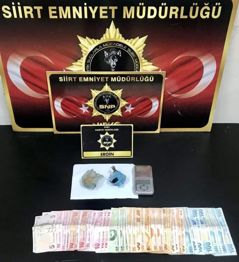 Siirt İl Emniyet Müdürlüğü Narkotik Suçlarla Mücadele Şube Müdürlüğü ekiplerince, uyuşturucu veya uyarıcı madde imal ve ticareti yapma veya sağlama ve kullanma suçlarının önlenmesi maksadıyla başlatılan çalışmalar devam ediyor. Bu kapsamında, Narkotik Suçlarla Mücadele Şube Müdürlüğü görevlilerince yapılan çalışmada; bir şahsın uyuşturucu madde ticareti yaptığı bilgisi alınması üzerine, kent merkezi Conkbayır Mahallesinde bulunan ikametinde yapılan aramada; 2 fişek satışa hazır eroin maddesi, bir adet bulaşıklı hassas terazi ve uyuşturucu madde ticaretinden elde ettiği değerlendirilen bin 725 lira ele geçirildi.