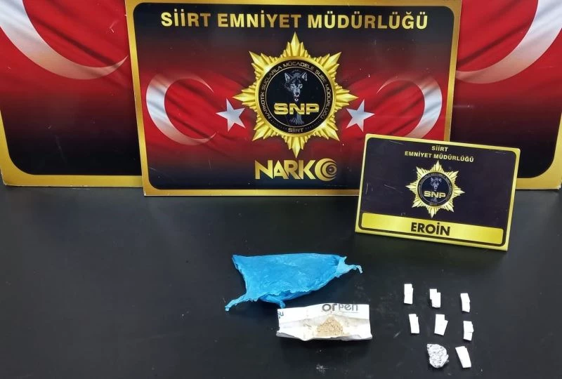 Siirt İl Emniyet Müdürlüğü Narkotik Suçlarla Mücadele Şube Müdürlüğü ekiplerince, kent merkezi Dumlupınar Mahallesi 520. Sokak’ta bulunan metruk binada 5 şahıs tespit edildi. Şüpheli A.Y., O.Ö., V.Ö., O.Ö. ve S.B. isimli şahıslar üzerinde yapılan aramada satışa hazır vaziyette 9 fişek eroin maddesi ele geçirildi.