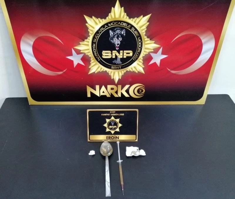 Siirt Valiliğinden yapılan açıklamada, İl Emniyet Müdürlüğünce narkotik suçlarının önlenmesine yönelik çalışmaların devam ettiği belirtildi. Açıklamada, "Kent merkezi Conkbayır Mahallesinde bulunan Cas evi olarak bilinen yapı etrafında yapılan kontroller esnasında, 2 şahsın binaya girdiği görülmüş, şahısların şüpheli hareketleri nedeniyle fiziki takibe başlanılmış olup üzerlerinde yapılan aramada toplamda 2 fişek halinde 0,71 gram eroin maddesi, enjektör, kaşık ve kullanıma hazır 3,56 gram eroin maddesi ele geçirilmiştir. Olay ilgili yapılan adli soruşturmada diğer bir şüpheli şahıs sevk edildiği adli makamlarca tutuklanmış, diğer şüpheli şahıs da serbest bırakılmıştır" denildi.