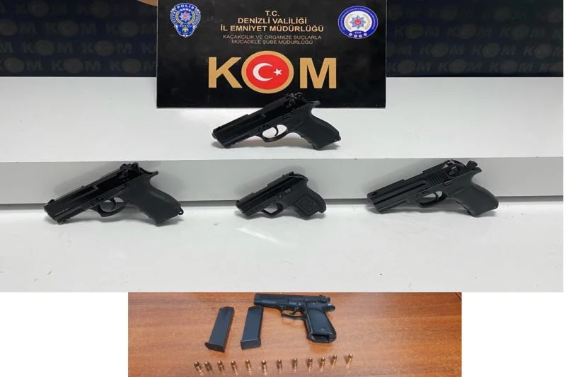 Denizli İl Emniyet Müdürlüğü’ne bağlı ekipler “Silah Kaçakçılığı” ile her türlü kaçakçılığın önlenmesi amacıyla operasyon gerçekleştirdi. Yapılan operasyon kapsamında 2 şüpheli ekipler tarafından kıskıvrak yakalandı. Yapılan aramada 5 adet ruhsatsız tabanca, 12 adet fişek, 2 adet şarjör ele geçirildi. Yakalanan şüpheliler hakkında “6136 Sayılı Ateşli Silahlar ve Bıçaklar ile Diğer Aletler” kanunu kapsamında adli makamlarca işlem yapıldı.