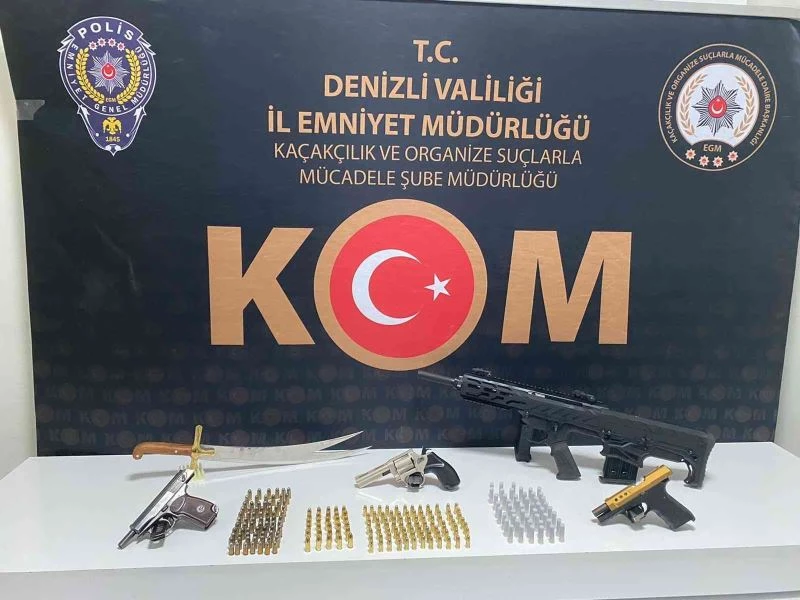 Denizli’de polis ekipleri kaçakçılık konuları ile her türlü kaçakçılığın önlenmesi amacıyla gerçekleştirilen operasyonlarına devam ediyor. Yapılan çalışmalar kapsamında 4 şüphelinin yeri tespit edildi. Yapılan başarılı operasyon sonucu 4 şüpheli ekipler tarafından yakalandı. Yakalanan şüpheliler hakkında “Silah Mühimmat Kaçakçılığı” ve “6136 Sayılı Ateşli Silahlar ve Bıçaklar ile Diğer Aletler Hakkında Kanun” kapsamında adli makamlarca işlem yapıldı. Yapılan operasyon ve aramalarda; 244 adet fişek, 6 adet ruhsatsız tabanca, 1 adet ruhsatsız av tüfeği, 1 adet kılıç ele geçirildi.