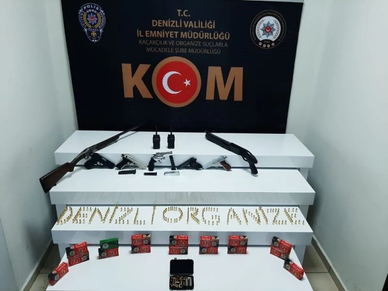 Denizli’de silah kaçakçılığı yapan şahıslara yönelik operasyon düzenlendi. Operasyon kapsamında şahısların üzerinden silahların yanı sıra telsizde çıktı.