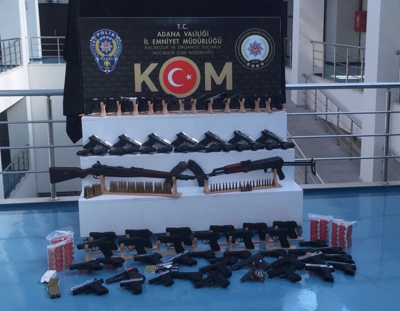 Adana Emniyet Müdürlüğü Kaçakçılık ve Organize Suçlarla Mücadele Şube Müdürlüğüne bağlı Organize Büro Amirliği ekipleri yaptıkları çalışmada, Adana merkezli Gaziantep, Hatay, Ordu ve Tokat illerinde silah kaçakçılığı yapan şahısların olduğunu belirledi. Polis savcılıktan alınan izinle 6 ay önce şahısları teknik ve fiziki olarak takip etmeye başladı. Yapılan takip sonucunda zanlıların il il gezerek Türkiye geneline tanesi 7 bin 500 ile 10 bin lira arasında silah satışı yaptığını tespit etti. Polis bu tespitler üzerine bugün Adana merkezli 5 ilde operasyon yaptı. Yapılan operasyonda 6 zanlı gözaltına alındı. Zanlıların ev ve iş yerlerinde yapılan aramalarda ise 53 tabanca, 2 uzun namlulu silah ve bin 500 mermi ele geçirildi. Zanlılar emniyete getirilerek sorguya alındı.