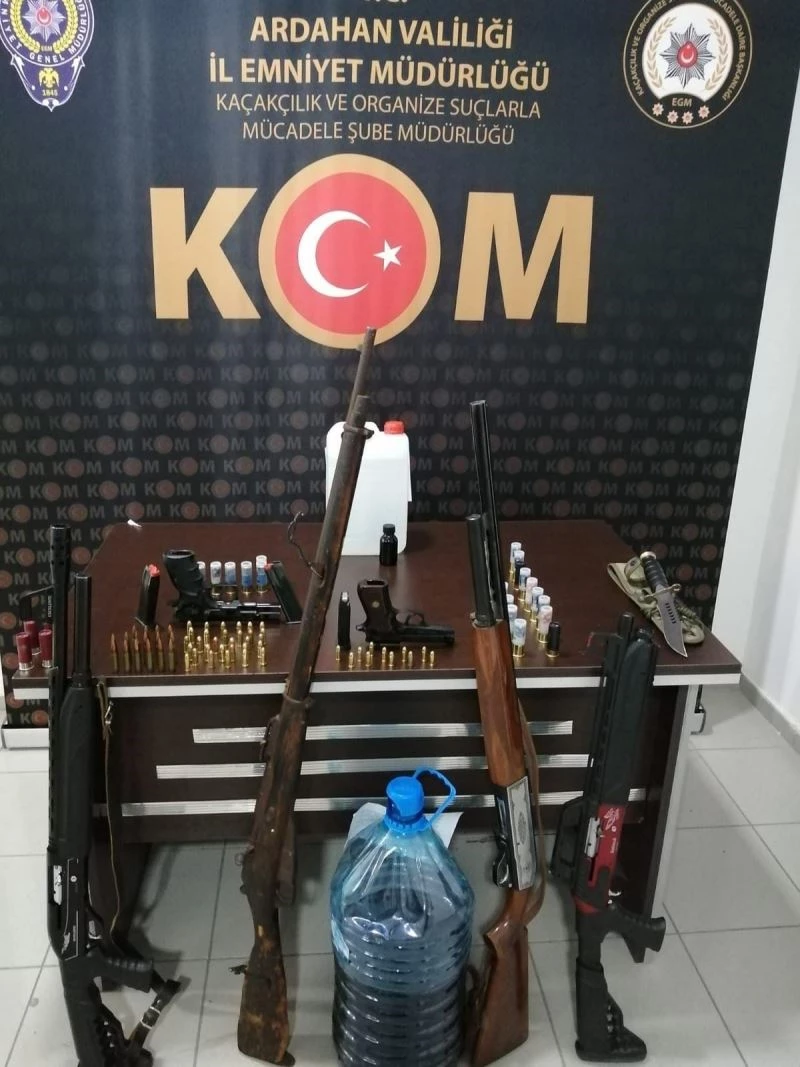 Ardahan Cumhuriyet Başsavcılığının talimatıyla, İl Emniyet Müdürlüğü Kaçakçılık ve Organize Suçlarla Mücadele Şubesi ekipleri, silah kaçakçılığına yönelik yürütülen çalışmalar kapsamında ayrı ayrı adreslere operasyon düzenledi. Eş zamanlı operasyonlarda silah kaçakçılığı yaptığı iddia edilen V.P, M.Ç, M.A. ve C.Ö. gözaltına alındı. Yapılan aramada 4 tüfek, 2 tabanca ve bu silahlara ait çok miktarda mühimmat ele geçirildi, 4 cep telefonuna da el konuldu. Emniyetteki işlemlerinin ardından mahkemeye sevk edilen 4 zanlı "silah kaçakçılığı" iddiasıyla tutukladı.