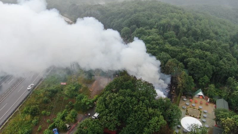 Şile’de bir restoranın bacasında başlayan yangın tüm iş yerini sardı. Çevredeki ağaçların da yandığı yangın nedeniyle yoğun duman gökyüzünü kapladı. Yanan restoran havadan görüntülendi.