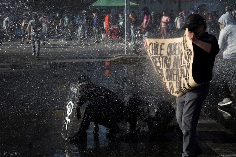 Şili’de, anayasa değişikliğinin referandum oylamasıyla kabul edilmesine rağmen yüzlerce kişi başkent Santiago’da sokaklara akın ederek hükümet karşıtı eylem düzenledi.