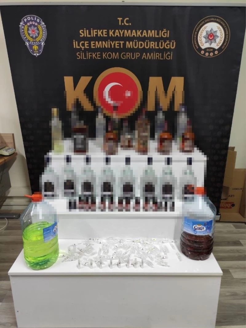 Silifke Emniyet Müdürlüğü Kaçakçılık ve Organize Suçlarla Mücadele Grup Amirliği ekipleri, bir evde sahte içki satışı yapıldığı bilgisi üzerine adrese operasyon düzenledi.
