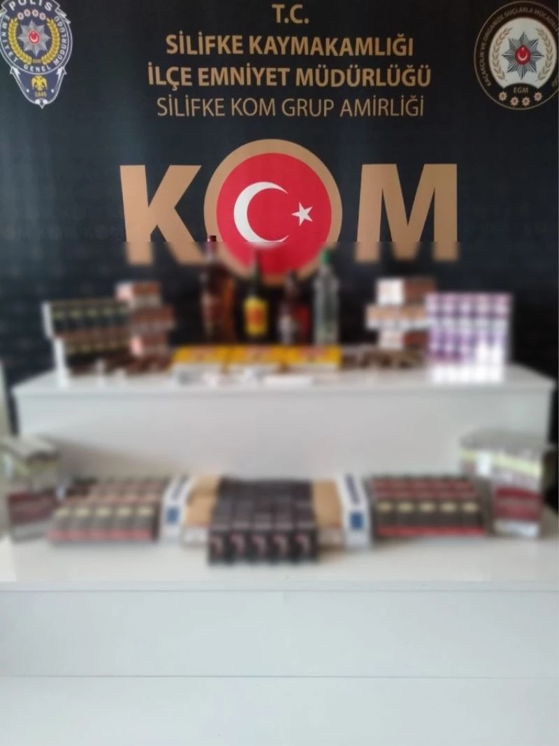 MERSİN (İHA) – Mersin’in Silifke ilçesinde Kaçakçılık ve Organize Suçlarla Mücadele (KOM) ekipleri tarafından çok sayıda gümrük kaçağı tütün ürünü ile içki ele geçirildi.