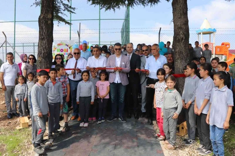 Kütüphane ve hobi bahçesinin açılış kurdelesini Kaymakam Abdullah Aslaner, Başkan Sadık Altunok, Milli Eğitim Müdürü Mustafa Sezgin davetlilerle birlikte kesti.