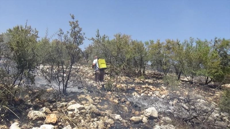 Yayilmadan söndürülen yanginda badem agaçlari zarar gördü.