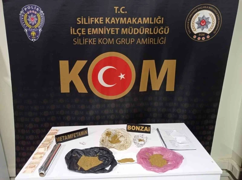 İl Emniyet Müdürlüğünden yapılan açıklamaya göre, Silifke İlçe Emniyet Müdürlüğü KOM Grup Amirliği tarafından yapılan çalışmada, B.A.K. adlı şüphelinin üzerinde 156 gram bonzai ile 1 gram metamfetamin ele geçirildi. Şüpheli şahıs, işlemlerinin tamamlanmasının ardından sevk edildiği mahkemece tutuklandı.
