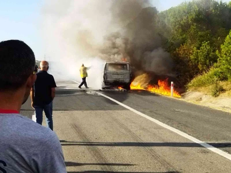 Edinilen bilgilere göre olay sabah saatlerinde Silivri - Çerkezköy yolu Büyükçavuşlu mevkiinde yaşandı. Hareket halindeki hafif ticari araçta henüz belirlenemeyen bir nedenle yangın çıktı. Araçtakiler kendilerini dışarı atarken, yangın bir anda büyüdü. Tüm aracın alevler içerisinde kaldığı olayda ölen ya da yaralanan olmadı.