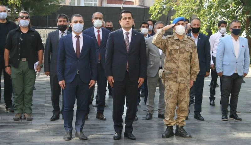Korona virüs tedbirlerinin alındığı törene, Kaymakam Belediye Başkan Vekili Ömer Faruk Çelik, Cumhuriyet Başsavcısı Rıdvan Yüksel, Garnizon Komutan Vekili jandarma Yarbay Nedim Karakuş, Jandarma Bölük Komutanı Binbaşı Adalet Gökcan, Emniyet Müdürü Vekili Komiser Mesut Ayıcan, siyasi parti temsilcileri, kamu kurum müdürleri ve vatandaşlar katıldı.