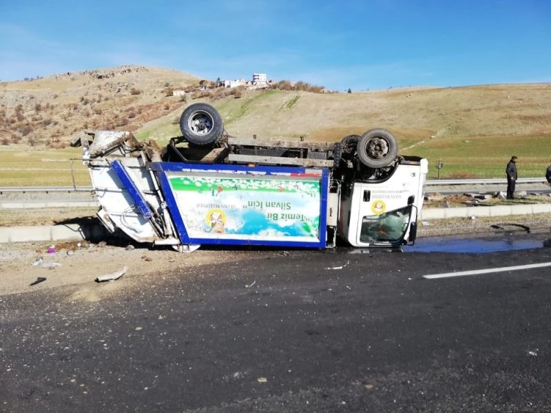 Diyarbakır’ın Silvan İlçe Belediyesine ait çöp toplama aracı, sürücüsünün direksiyon hakimiyetini kaybetmesi sonucu devrildi. Kazada 3 kişi yaralandı.