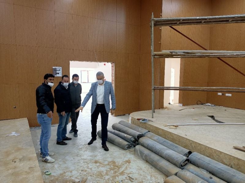 Simav Belediye Başkanı Adil Biçer, yapımı devam eden kültür evinde incelemelerde bulundu.
