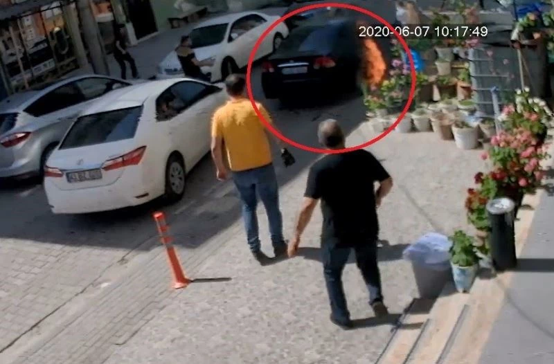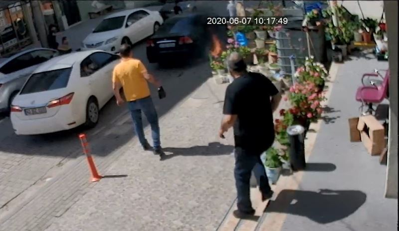 Olay anı ise güvenlik kameralarına yansıdı. Saniye saniye kaydedilen görüntülerde, araç sahibi simit almak için sırada beklerken, otomobilden bir anda dumanların yükselmeye başladığı görülüyor. Çevredeki vatandaşlar koşarak araçta çıkan yangına müdahale etmeye çalışıyor. Otomobil sürücüsü ise araçta bulunan eşi ve çocuklarını kurtarmaya çalışıyor.