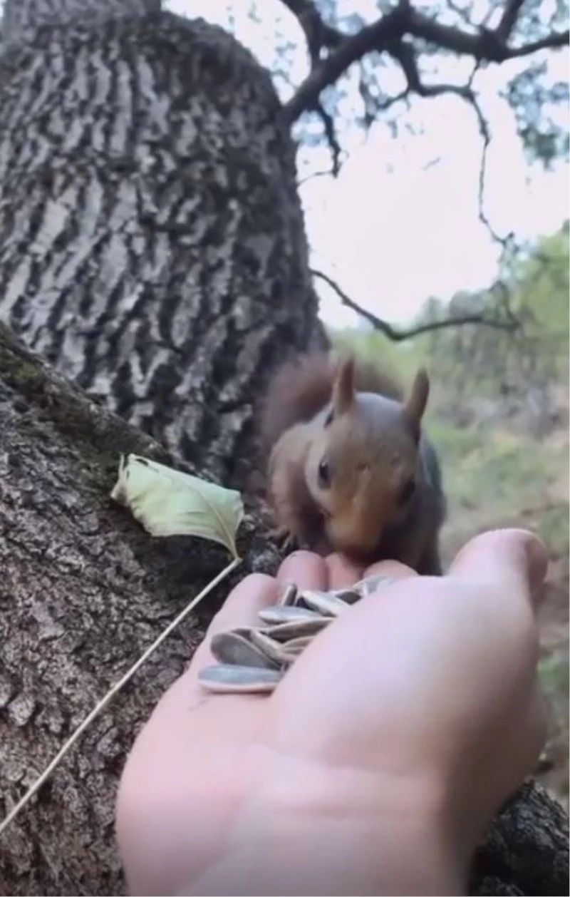 Tunceli’de Munzur Vadisi Milli Parkında arkadaşlarıyla gezmeye giden Hüseyin Hare isimli genç, vadide oturduğu bir ağacın altında çekirdek yerken etrafında gezinip duran sincaba denk geldi. Yiyecek arayan sincaba elindeki çekirdekleri uzatan gencin bu davetini geri çevirmeyen sincap, Hare’nin elinden çekirdek yedi. O anları cep telefonu kamerasıyla kayıt altına alan Hare, ’’Elimdeki çekirdekleri ilk uzattığımda ürkek davrandı. Ancak sonra ona zarar vermeyeceğimi anladığı için elimdeki çekirdekleri afiyetle yedi. Ben de o anları cep telefonu kamerasıyla kayıt altına aldım. Doğadaki hayvanlar, kendilerine zarar vermeyecek insanları anlıyorlar’’ dedi.