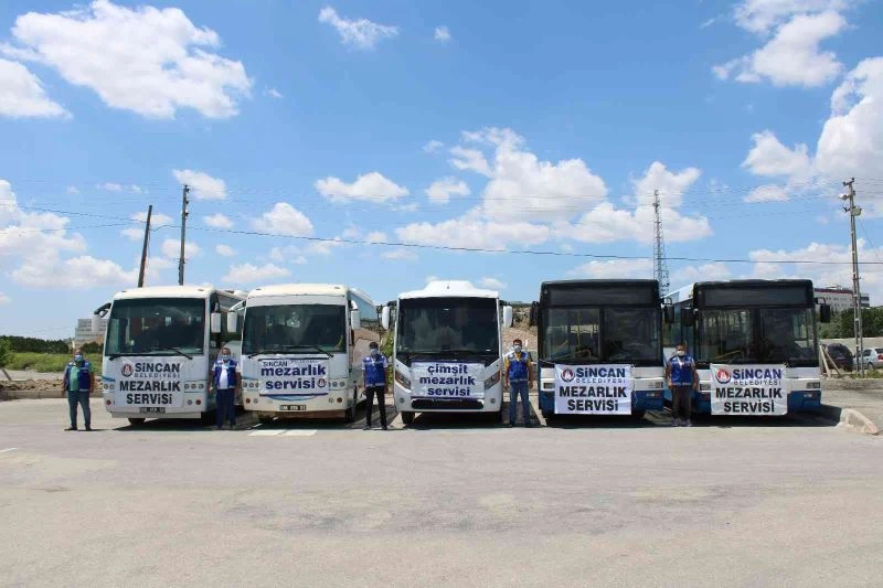 Sincan Belediyesi her Cuma 09.00 ile 14.00 saatleri arasında ücretsiz mezarlık servisi hizmeti veriyor. Vatandaşlar servislerle mezarlık ziyaretinde bulunup rahatlıkla dönebiliyor.