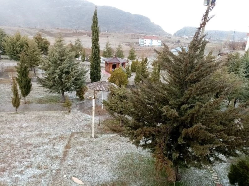 Adıyaman’ın Sincik ilçesinde etkili olan dolu yağışı her yeri beyaza bürüdü.