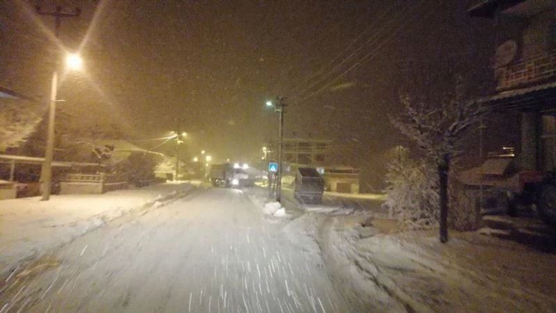 Balıkesir’in Sındırgı ilçesinde yüksek rakımlı mahalleler başta olmak üzere ilçe merkezinde pazar günü öğlen saatlerinde başlayan kar kısa sürede yolları kapattı.