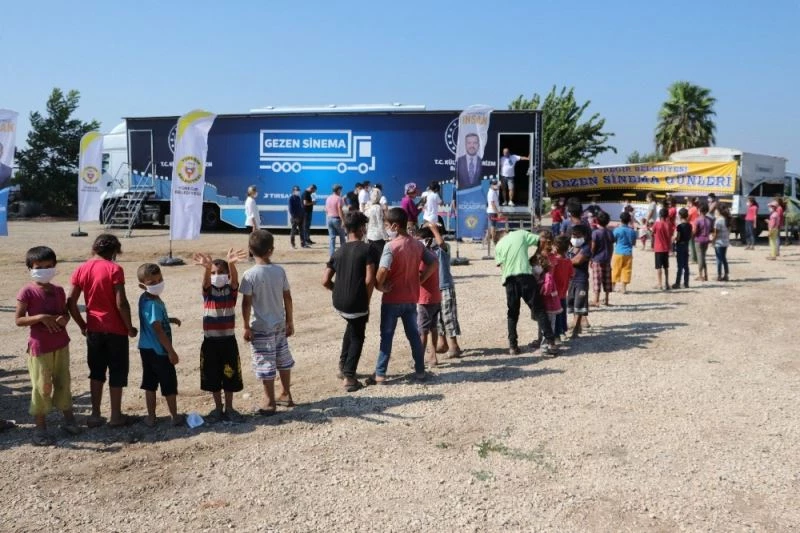Kültür ve Turizm Bakanlığı Sinema Genel Müdürlüğü iş birliğinde gerçekleştirilen proje kapsamında 7-8 Ağustos tarihlerinde Adana’da büyük küçük herkesi ‘ücretsiz’ olarak sinemayla buluşturan ve Covid-19 salgını sonrası alınan önlemlere uygun hale getirilen ‘Gezen Sinema Tırı’, mevsimlik tarım işçiliği yapan ailelerin çocuklarına keyifli bir gün yaşattı.