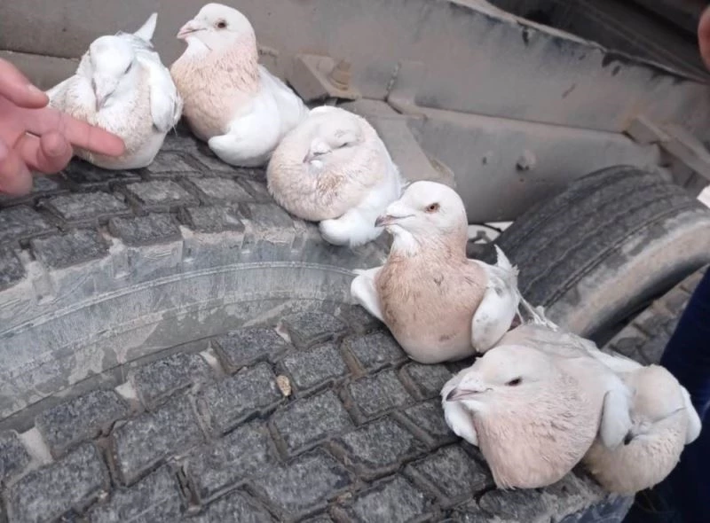 Şanlıurfa’nın Akçakale ilçesinde gümrük kapısından geçmeye çalışan kamyonun damperinin altındaki özel bölmede 6 güvercin ele geçirildi.