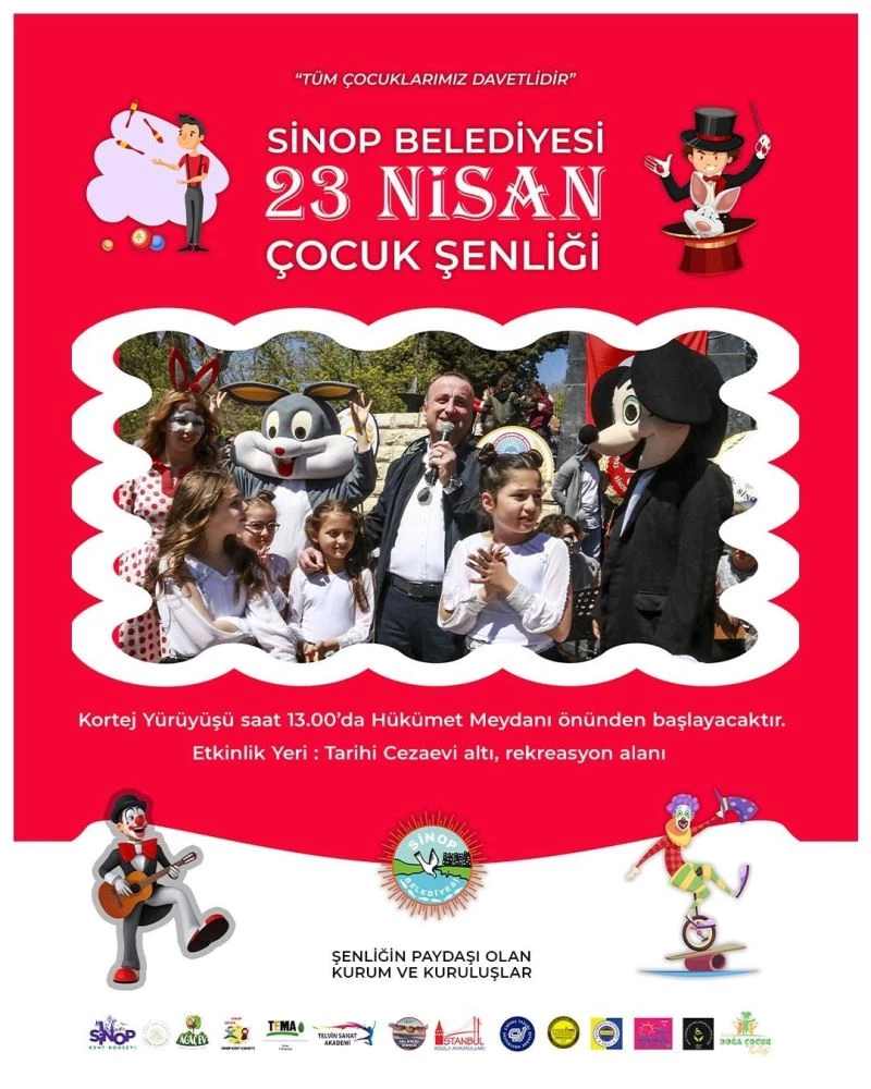 Sinop Belediye Başkanlığı ve paydaşlar tarafından düzenlenen 23 Nisan Ulusal Egemenlik ve Çocuk Bayramı etkinlikleri, kortej yürüyüşü ile saat 13.00’te Hükümet Meydanı’ndan başlayacak. Tüm çocuklar ve bayram coşkusunu hisseden büyükler şarkıya balkonlardan bayraklarıyla eşlik edecekler. Belediye başkanı Barış Ayhan, “Büyük bayramımızı hep birlikte kutlamaya, çocuk şenliğimize sizleri de bekliyoruz” diyerek kentteki tüm çocukları ve ailelerini korteje davet etti.