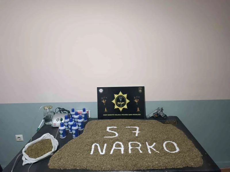 Sinop İl Emniyet Müdürlüğü Narkotik Suçlarla Mücadele ile Gerze İlçe Emniyet Müdürlüğü ekiplerince, uyuşturucu ürettiği ve sattığı tespit edilen bir grup şüpheli takibe alındı. Şahıslar Gerze’de trafikte seyir halindeyken durdurularak araçta ve üstlerinde arama yapıldı. Ayrıca şahısların kullandığı ikamette de arama gerçekleştiren ekipler, toplam 2,16 kilo bonzai, 8 kutu bonzai yapımında kullanılan kimyasal madde, çeşitli düzenekler ve 1 ruhsatsız tabanca ele geçirdi.