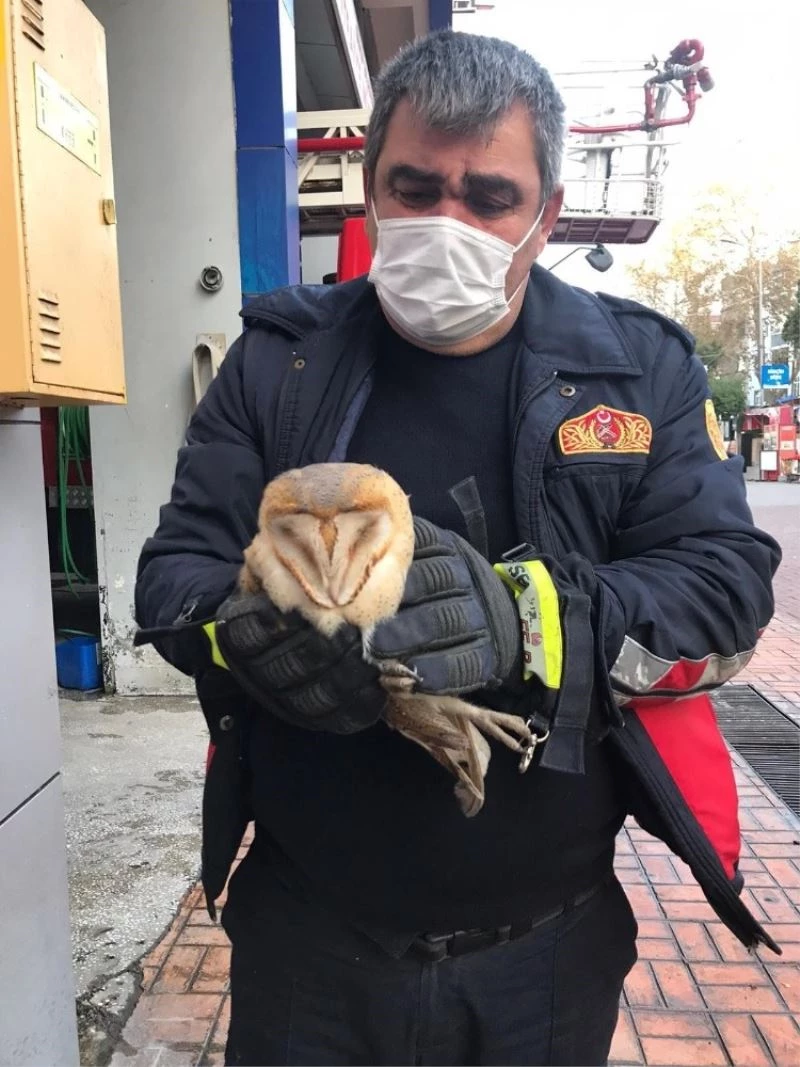 Sinop’ta bir evin bacasında mahsur kalan peçeli baykuş, itfaiye ekiplerinin çalışmasıyla kurtarıldı.