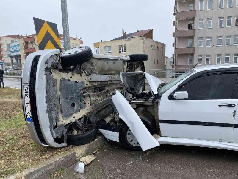 Sinop’ta meydana gelen trafik kazasında çarpışan iki otomobilden biri yan yattı, kazaya karışan her iki aracın şoförü de yaralandı.