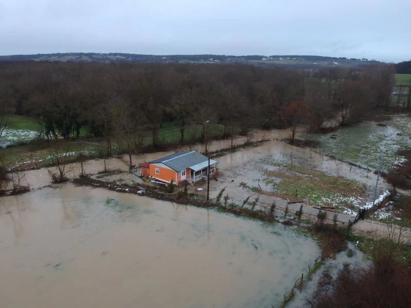 Sinop’ta Aksaz Deresi’nin taşması sebebiyle tarım arazileri sular altında kaldı.