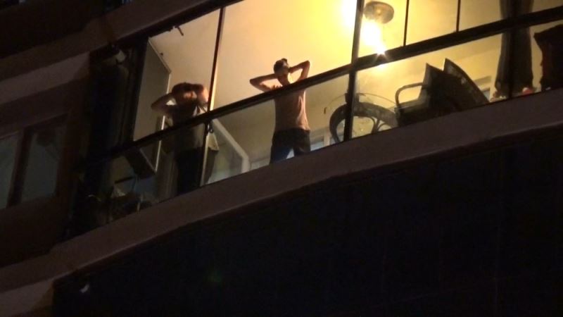 Antrenör sokakta, vatandaşlar ise balkonda antrenman yapıyor. Yetişkinler ve çocuklar için ayrı ayrı hazırlanan aktivitelerle onlarca kişinin spor yapması sağlanıyor. Vatandaşlar kurulan ses sistemi ile müzik eşliğinde hem eğleniyor hem de spor yapıyor.