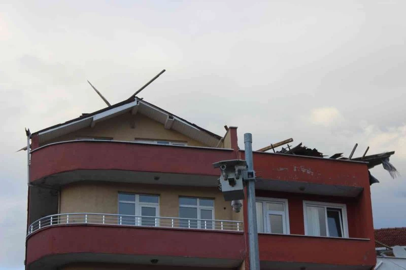 İlçede öğle saatlerinden itibaren etkili olan şiddetli fırtına nedeniyle çok sayıda apartmanın çatısı uçtu, bazı araçlarda maddi hasar meydana geldi.