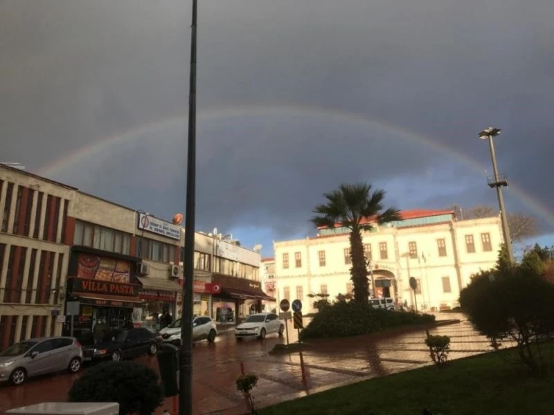 Sinop’ta, yağmurun ardından oluşan gökkuşağı renklerinin sonucunda kartpostallık görüntü oluşturdu.